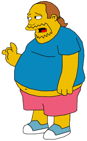 Ahh comic book guy rocks my life, haha hes such a tubby! Nobody actually knows yet what comice book guys name is, its never been said! WOWEE